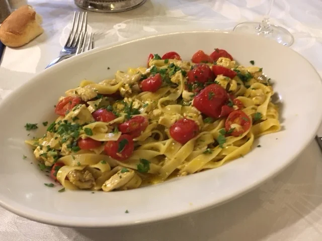 Pasta dishes in Sicily are often fish based, like this platter here. Again only the freshest ingredients are used and we can usually give you the recipe to take home with you.